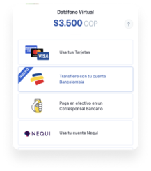 Somos una plataforma de pagos que pone a tu disposición los principales medios de pago electrónico con el respaldo del ecosistema Bancolombia.